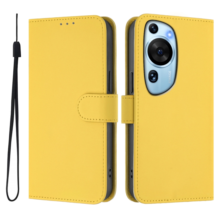 Funda de Piel Sintética con Tacto Artístico para Huawei P60 con Cordón (Amarillo Limón)