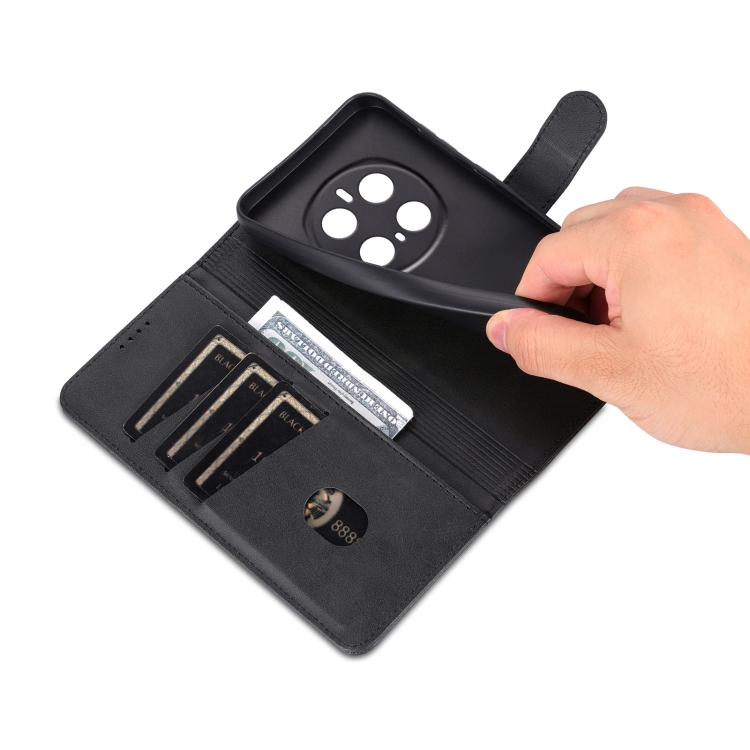 Funda de Piel Sintética con Tapa y Textura de Piel de Becerro para Honor Magic7 Pro Azns (Negra)
