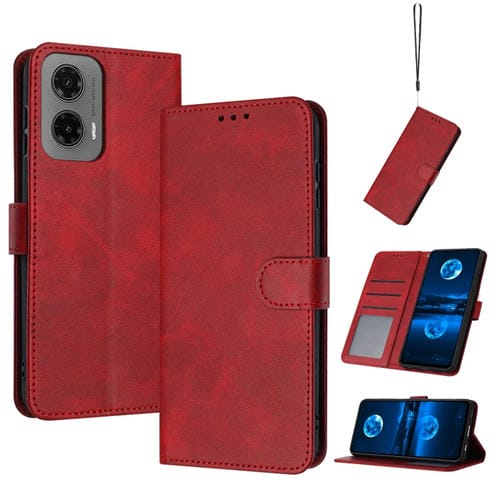Funda Piel Sintética con Tapa y Textura Becerro para Motorola Moto G35 (Rojo)