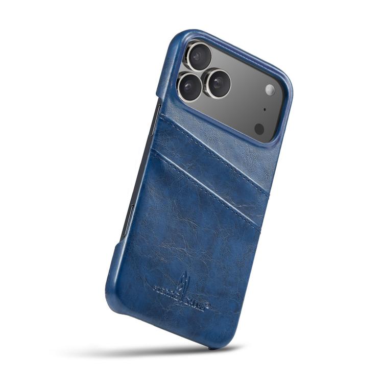 Funda de piel sintética con textura retro de cera de aceite Fierre Shann para iPhone 17 Pro (azul)