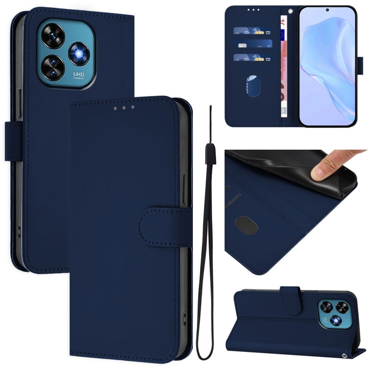Funda Piel Sintética con Cordón para Oukitel C51 (Azul Marino)