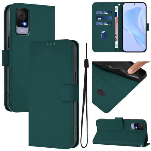 Funda de piel sintética con cordón para TCL 405/406/408 (Verde oscuro)
