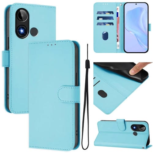 Funda de piel sintética Blu C9 con cordón para teléfono (Azul Cielo)