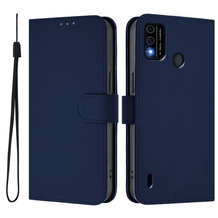 Funda Piel Sintética con Cordón para Teléfono Itel A48 (Azul Marino)