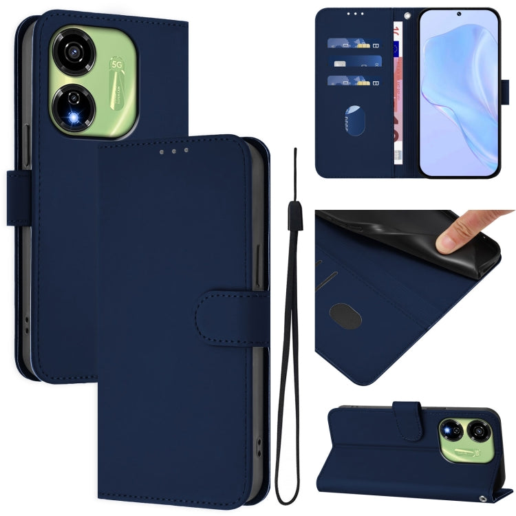 Funda Piel Sintética con Cordón para Teléfono Itel P55 5G (Azul Marino)