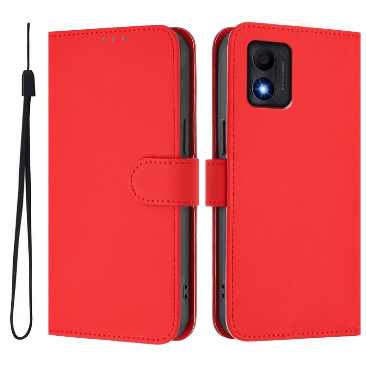 Funda de Piel Sintética para Teléfono TCL 303 con Cordón (Rojo)