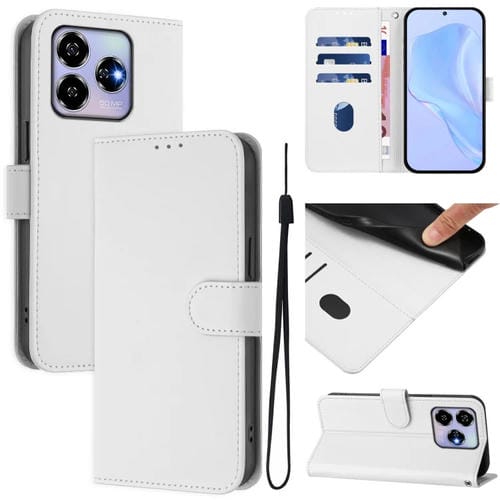 Funda Piel Sintética con Cordón para ZTE Blade V60 4G y Axon 60 4G (Blanco)