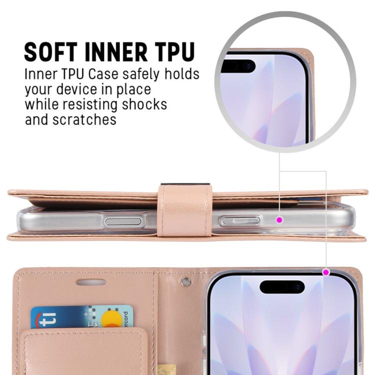 Funda de piel texturizada Crazy Horse para iPhone 17 GOOSPERY RICH DIARY (Oro rosa)