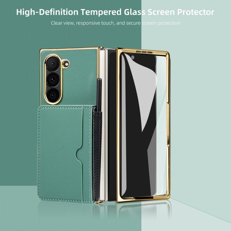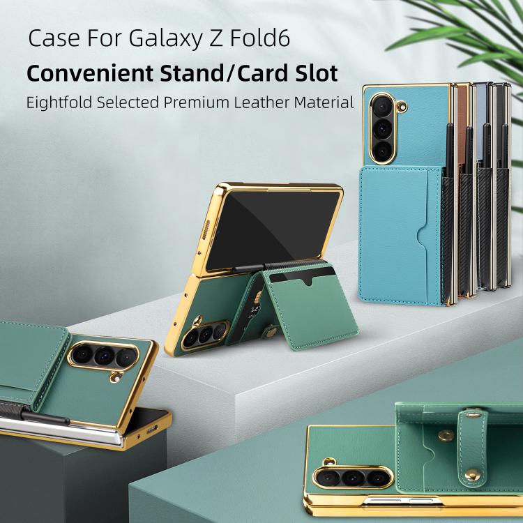 Funda de PU con tapa y ranuras para tarjetas integradas para Samsung Galaxy Z Fold6 de VIETAO (gris espacial)