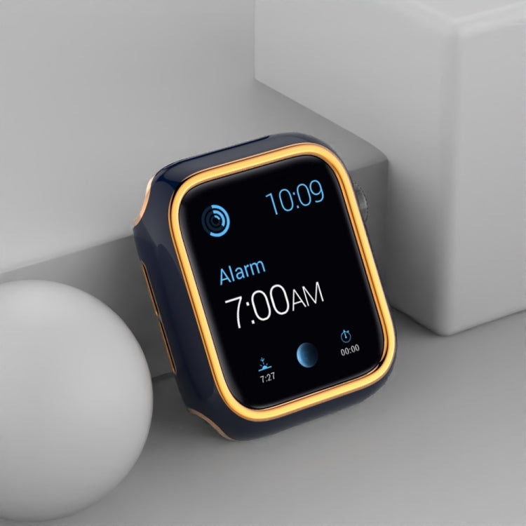 Funda de Reloj PC Galvanoplastia Dos Colores para Apple Watch Series 6 SE 5 4 40mm (Blue Rose Gold)