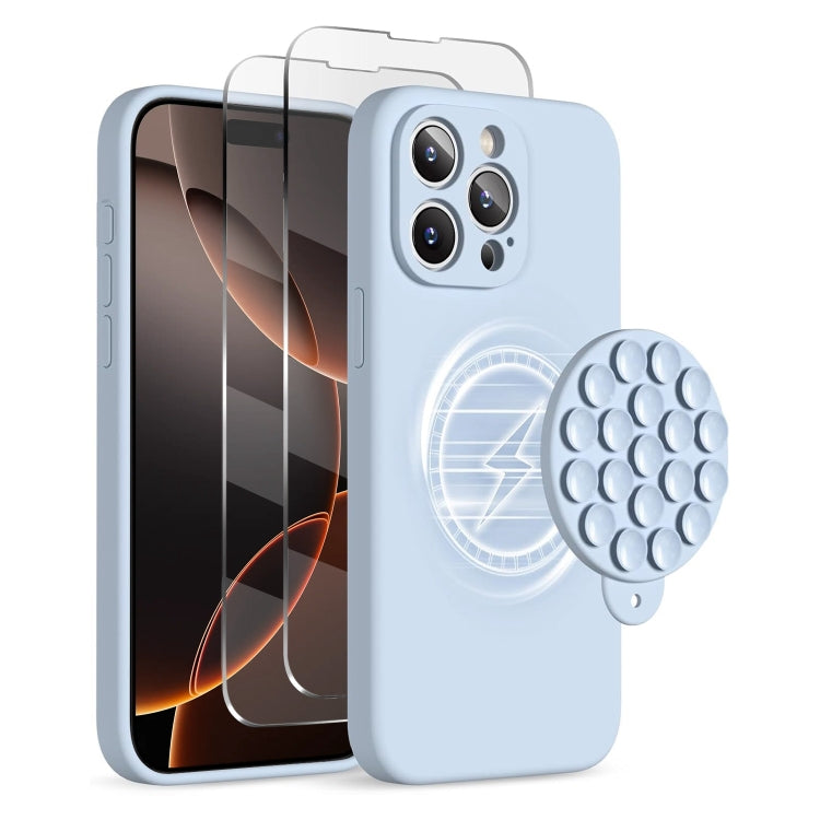 Funda de Silicona con Ventosa Magsafe para iPhone 16 Pro con Película de Pantalla (Azul Sierra)