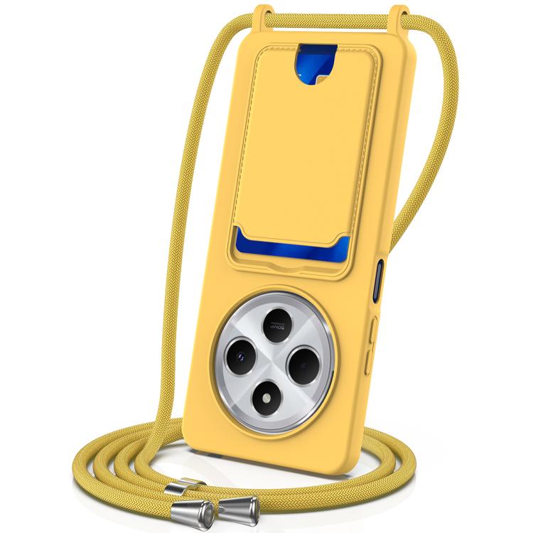 Funda de silicona líquida de color sólido con cordón para Redmi 14C 4G / 14R 5G / A4 5G (con tarjetero integrado) (amarilla)
