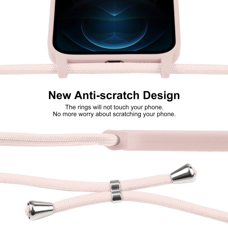 Funda de Silicona Líquida para iPhone 12 Pro Max Crossbody Lanyard (Rosa Arena)