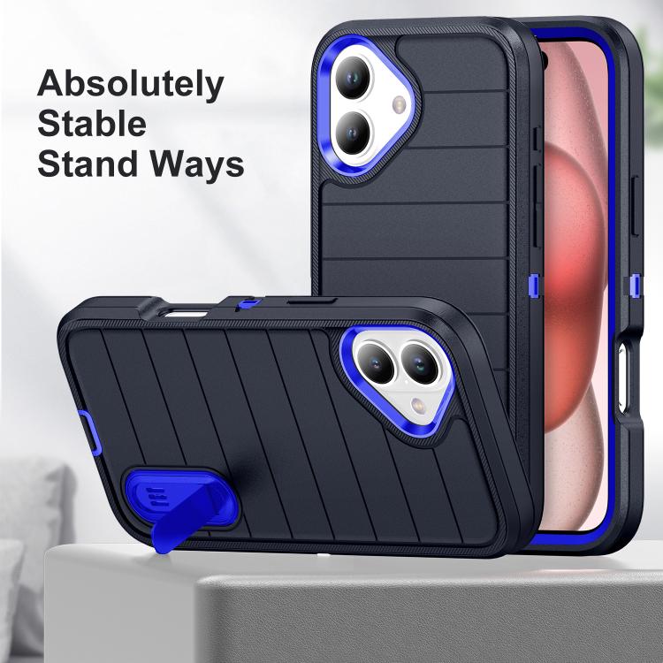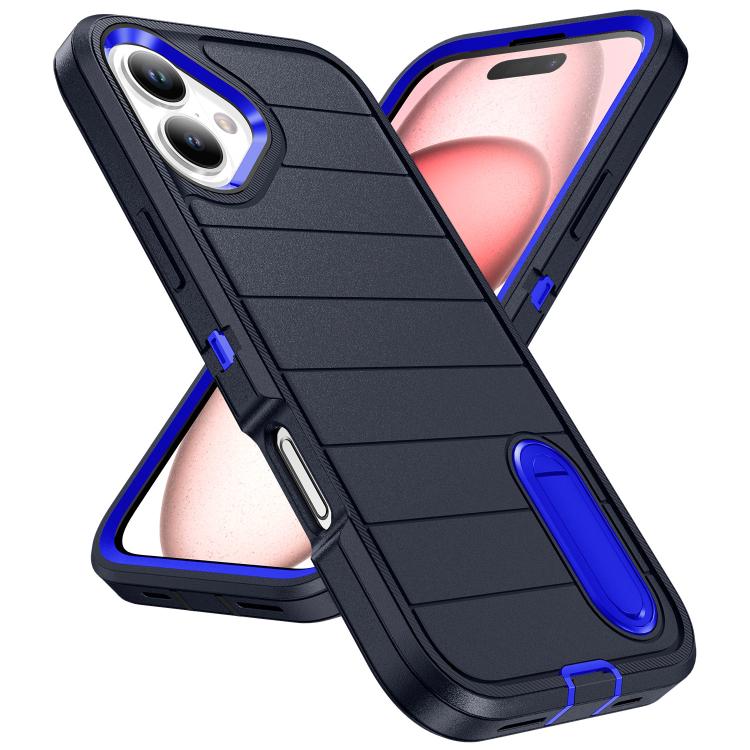 Funda para iPhone 16 Defender Gen2 de Silicona y PC con Soporte (Azul Oscuro)