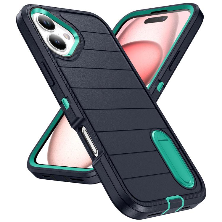 Funda de Silicona y PC Resistente con Soporte para iPhone 16 Defender Gen2 (Azul Oscuro y Cian)