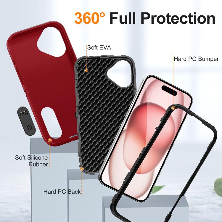 Funda para iPhone 16 Defender Gen2 Silicona y PC Resistente con Soporte (Rojo y Negro)