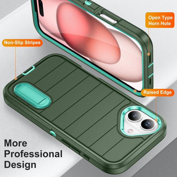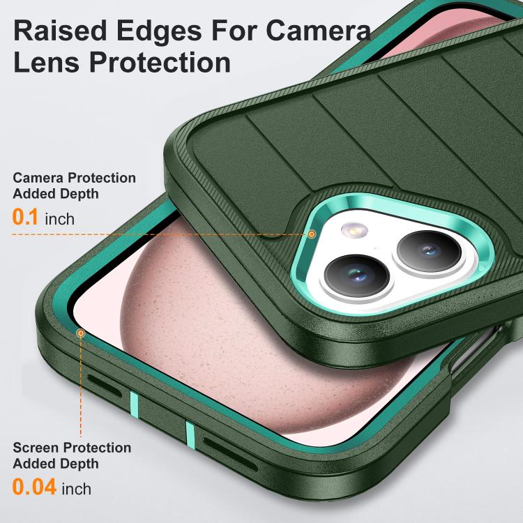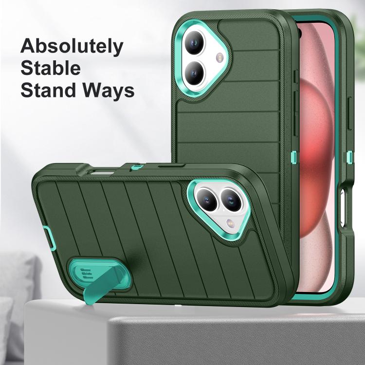Funda de Silicona y PC Resistente con Soporte para iPhone 16 Defender Gen2 (Verde Oscuro y Cian)