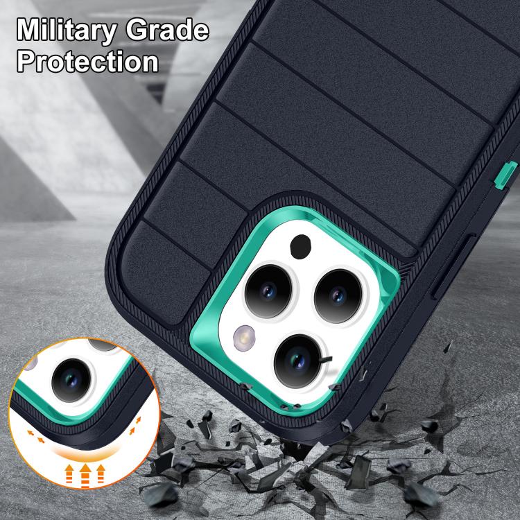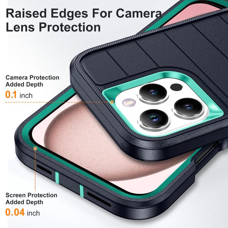 Funda Silicona y PC Resistente con Soporte para iPhone 16 Pro Defender Gen2 (Azul Oscuro y Cian)