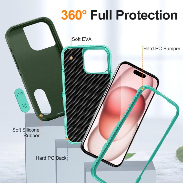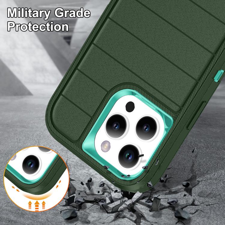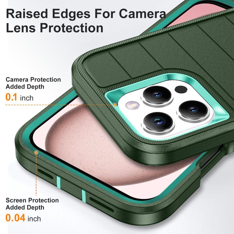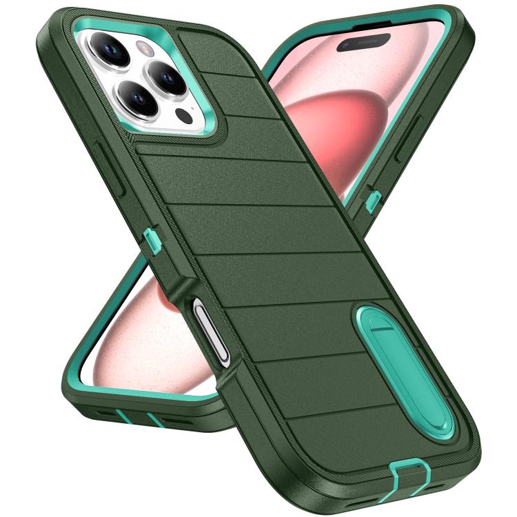 Funda silicona y PC resistente con soporte iPhone 16 Pro Defender Gen2 (Verde Oscuro y Cian)