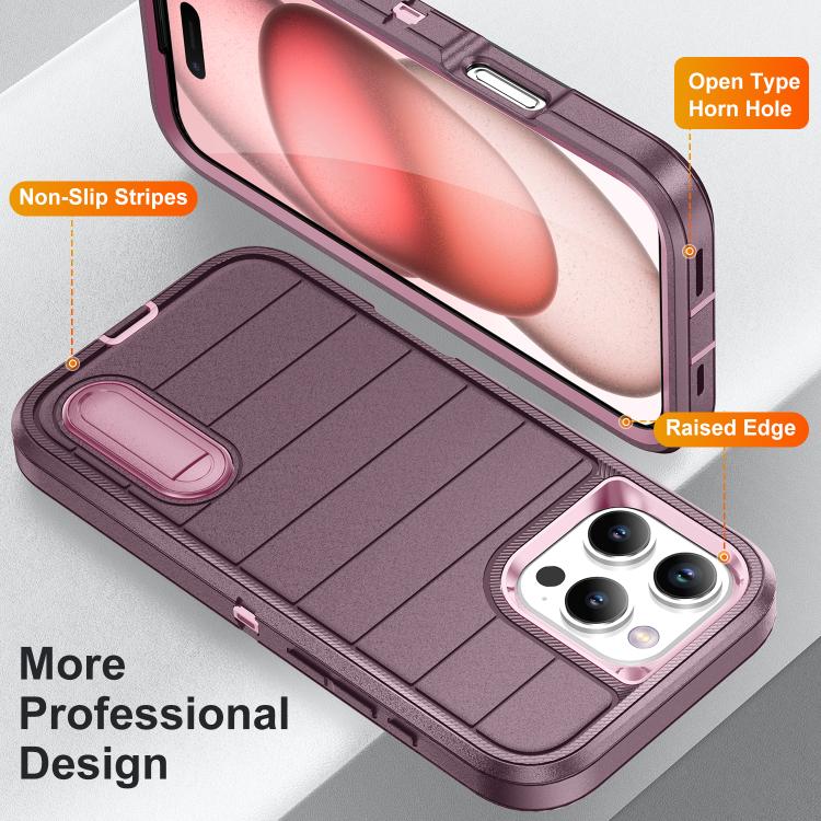 Funda de Silicona y PC Defender Gen2 para iPhone 16 Pro con Soporte (Morado y Rosa Claro)