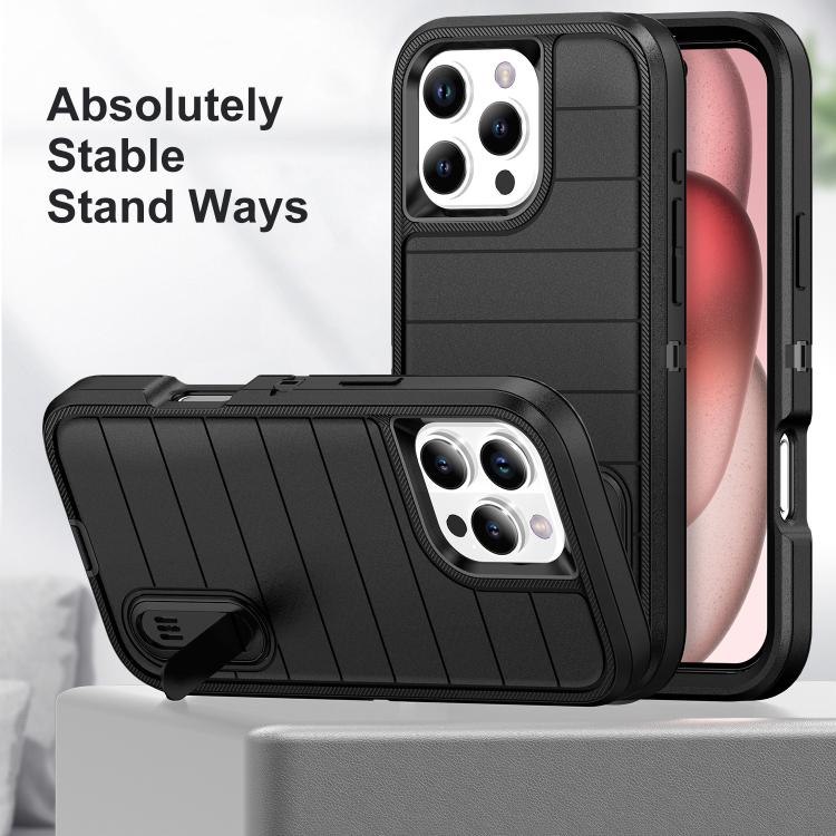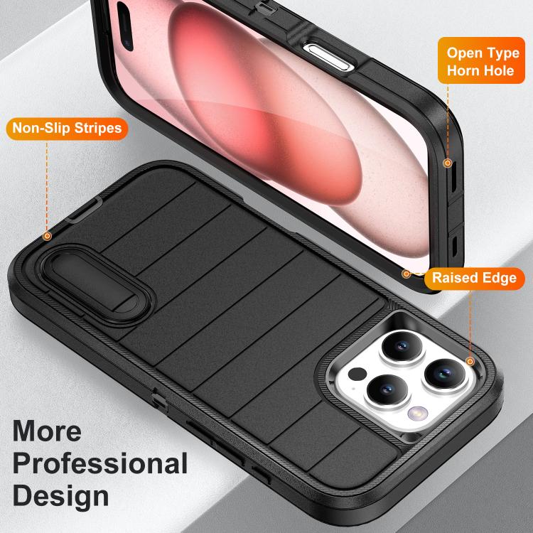 Funda de Silicona y PC Defender Gen2 para iPhone 16 Pro con Soporte (Negro)