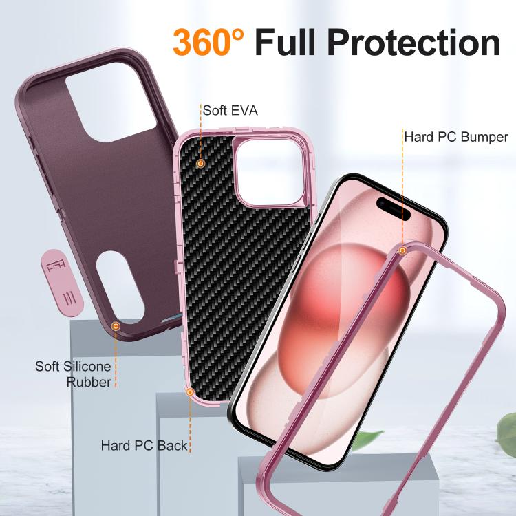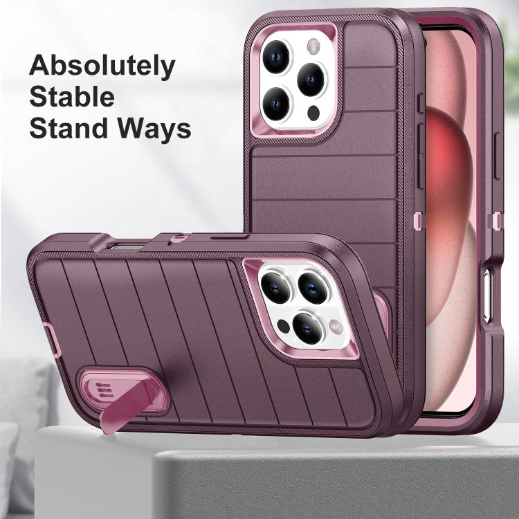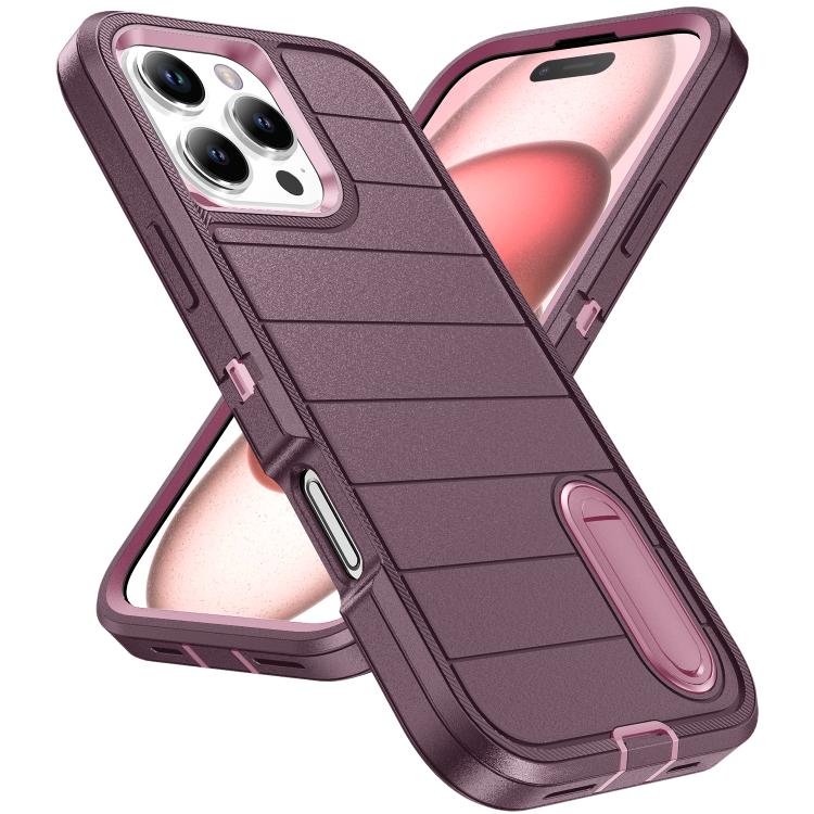 Funda de Silicona y PC Defender Gen2 para iPhone 16 Pro Max con Soporte (Morado y Rosa Claro)