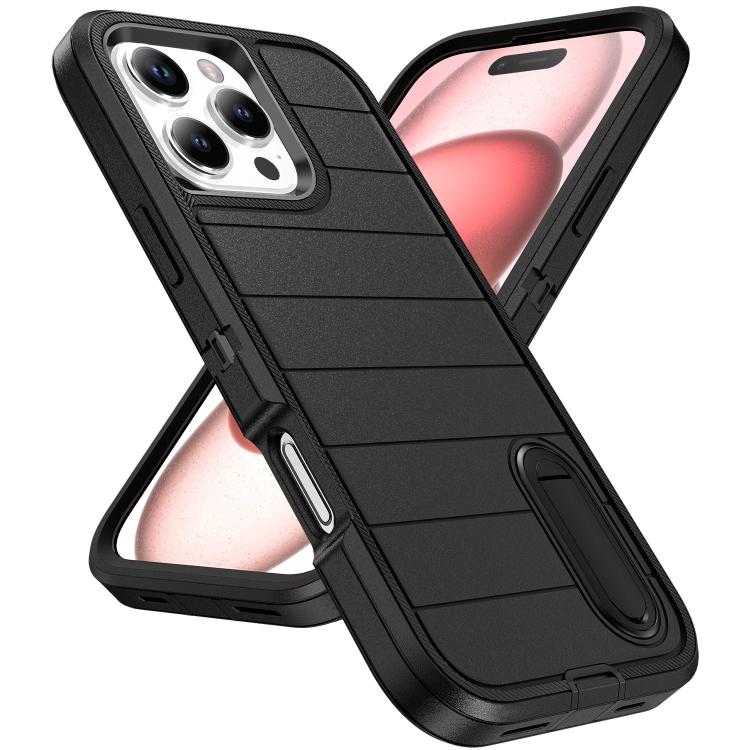 Funda de Silicona y PC Defender Gen2 para iPhone 16 Pro Max con Soporte (Negro)