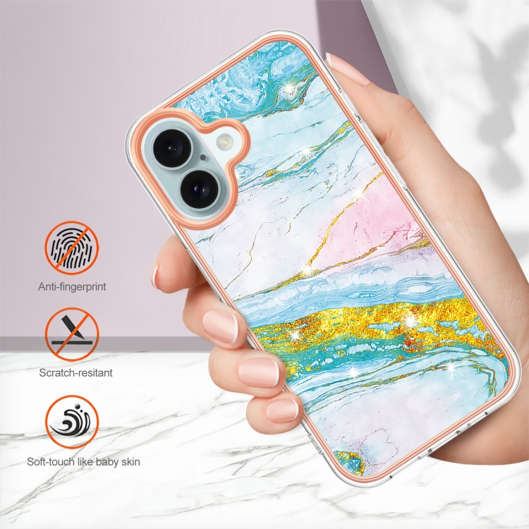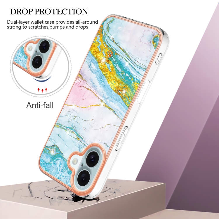 Funda de Teléfono TPU Imd Doble Cara Patrón Mármol Galvanizado iPhone 16 Plus (Verde)