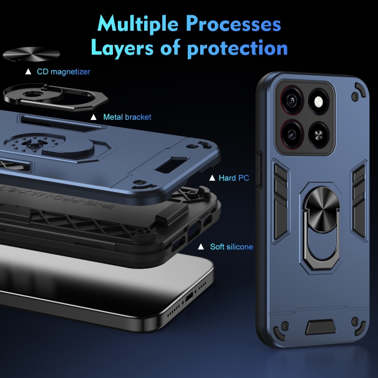 Funda de Teléfono ZTE Blade A35/A55 con Soporte de Anillo Metal y Protección (Azul)