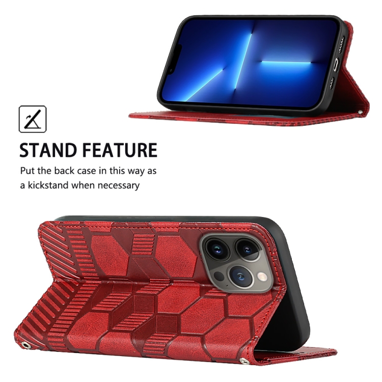 Funda de Teléfono iPhone 15 Pro Max Cuero Magnético Textura de Fútbol (Rojo)