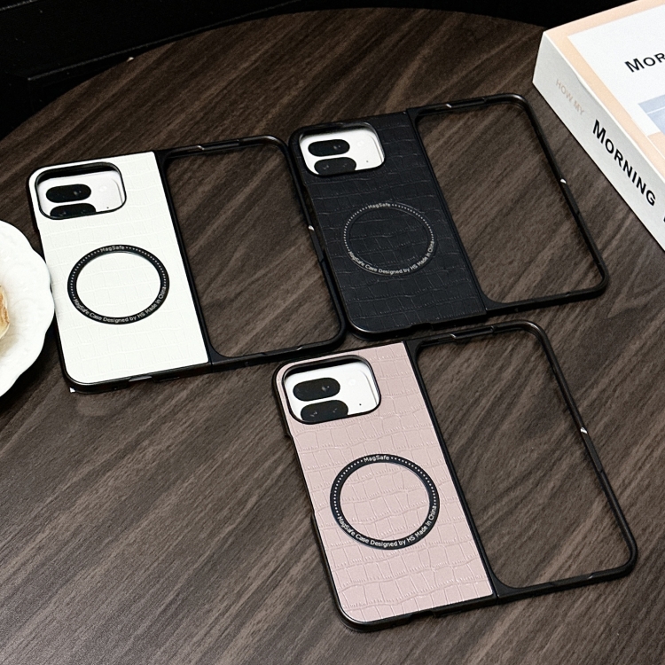 Funda de Piel con Tapa Magnética y Diseño de Cocodrilo para Google Pixel 9 Pro Fold (Negra)