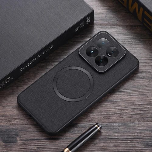 Funda De Teléfono Con Textura De Tela Magnética De Pu Para Xiaomi 14T Cd (Negra)
