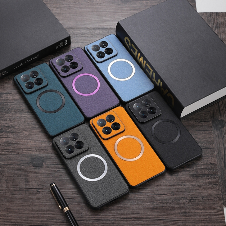 Funda De Teléfono Con Textura De Tela Magnética De Pu Para Xiaomi 14T Cd (Verde)