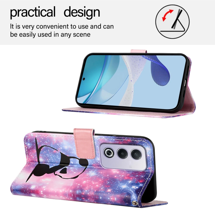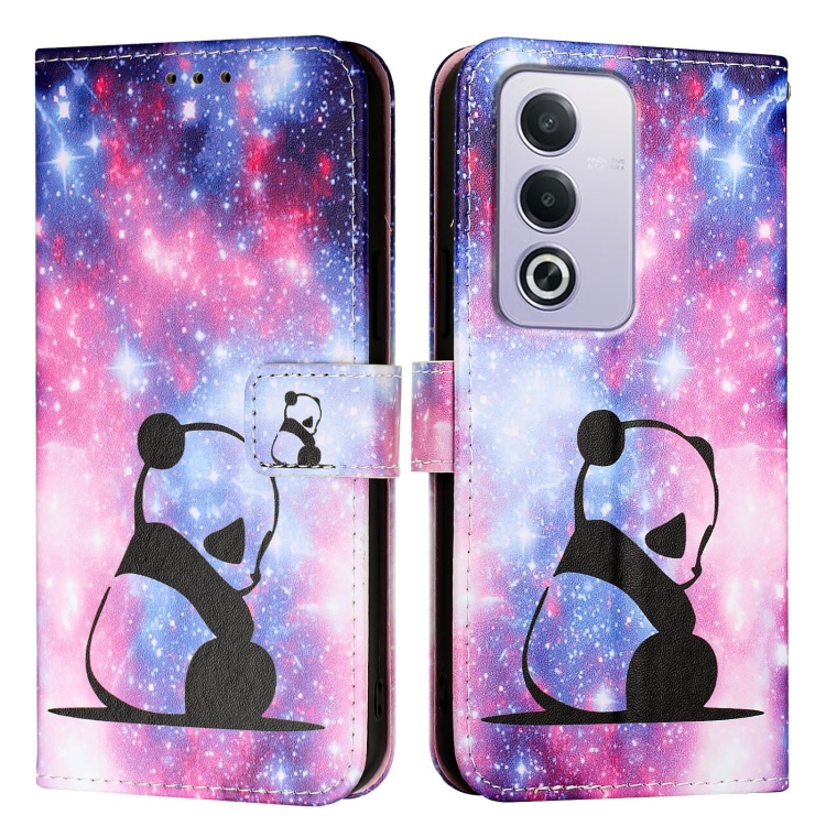 Funda de Teléfono de Cuero con Patrón de Dibujo de Colores de Tejido Liso para Oppo A3 Pro 5G (Panda Bebé)