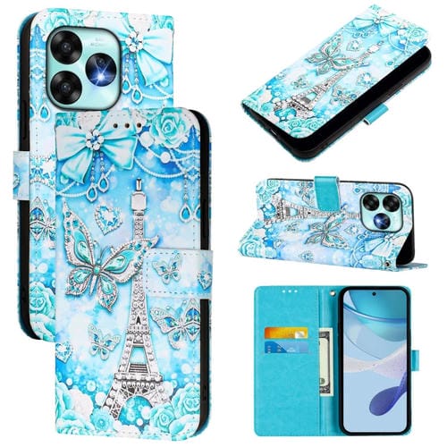 Funda de Cuero para Umidigi A15 A15C A15T con Patrón Mariposa y Torre
