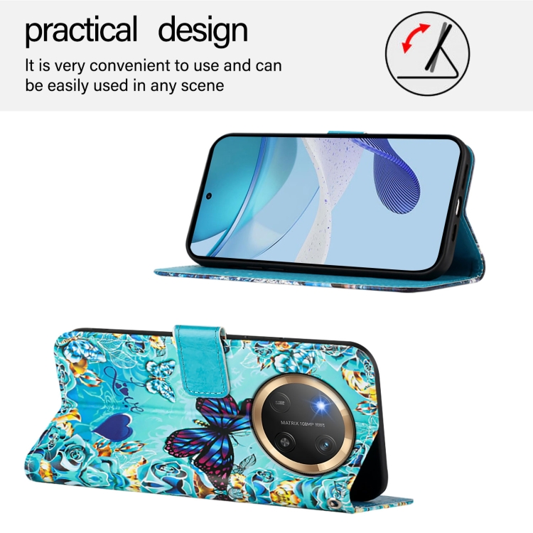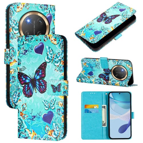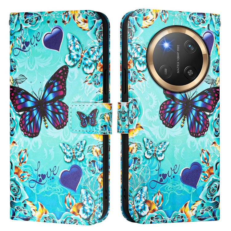 Funda de Cuero para Honor X9C 5G con Patrón Mariposa de Amor y Tejido Liso