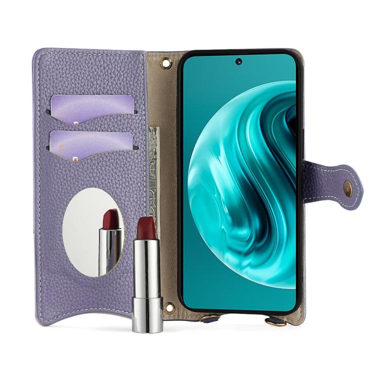 Funda de Cuero de Lichi con Cola de Pez y Cadena Cruzada para Huawei Nova 12I / Enjoy 70 Pro (Morado)