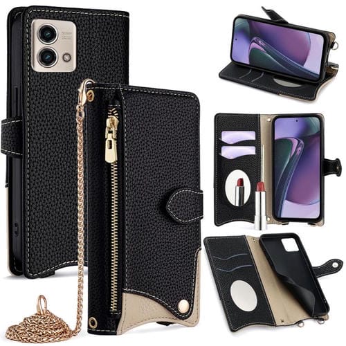 Funda de Cuero con Cadena Cruzada y Diseño de Cola de Pez para Motorola Moto G Stylus 5G 2023 (Negro)