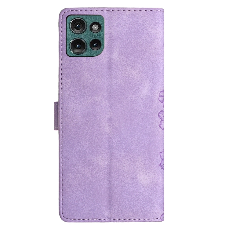 Funda de Teléfono PU Motorola Edge 50 5G con Relieve Mariposa y Flor de Cerezo (Morado)