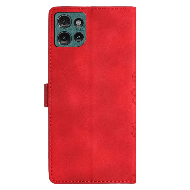 Funda de Teléfono PU Motorola Edge 50 5G con Relieve Mariposa y Flor de Cerezo (Rojo)