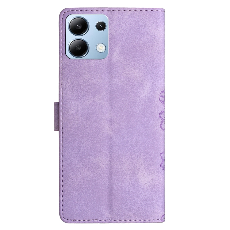 Funda de Teléfono de Pu con Relieve de Piel de Mariposa y Diseño de Flor de Cerezo para Redmi Note 13 4G (Morado)