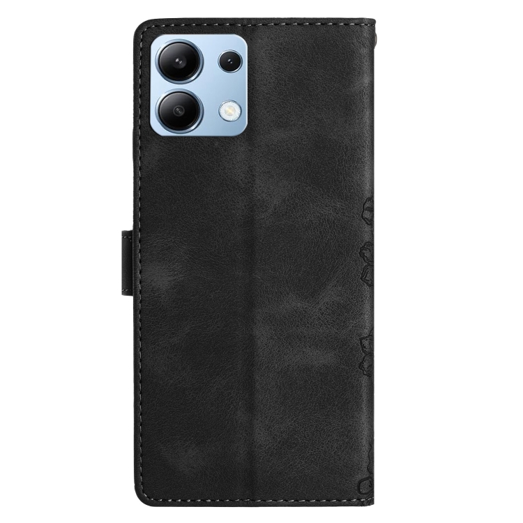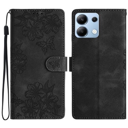 Funda de Teléfono de Pu con Relieve de Piel de Mariposa y Diseño de Flor de Cerezo para Redmi Note 13 4G (Negra)