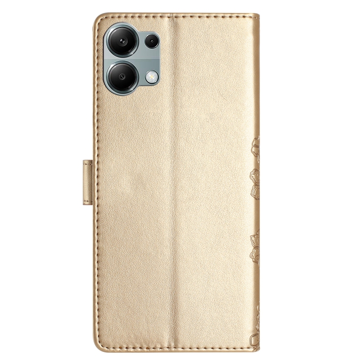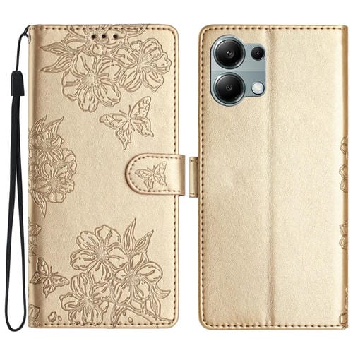 Funda de Teléfono de Pu con Relieve de Piel de Mariposa y Diseño de Flor de Cerezo para Redmi Note 13 Pro 4G (Dorada)