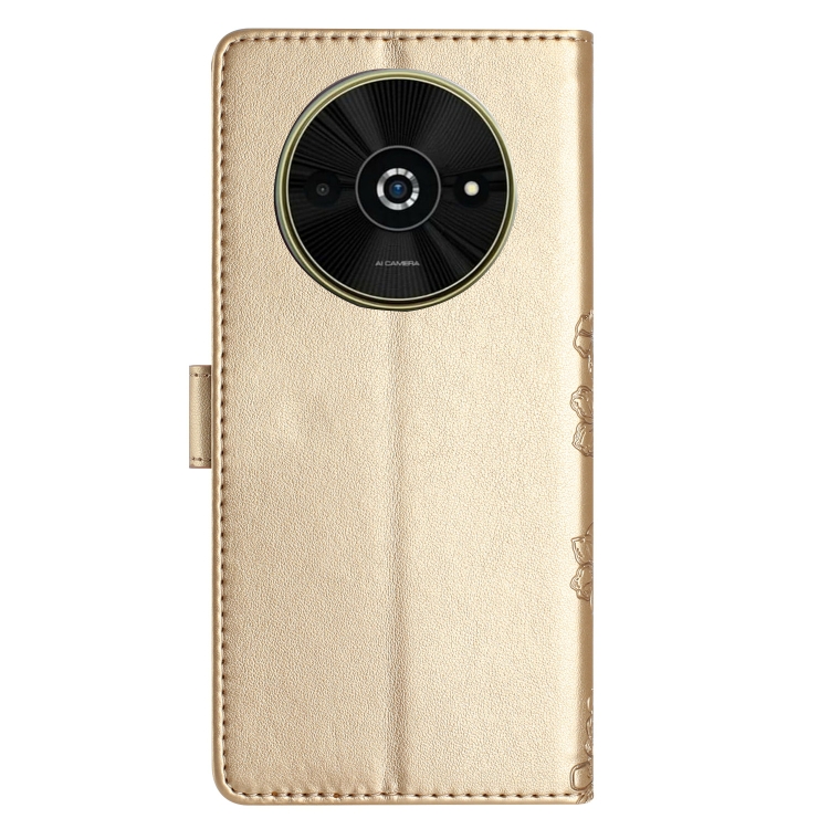Funda de Teléfono de Pu con Relieve de Piel de Mariposa y Diseño de Flor de Cerezo para Xiaomi Poco C61 (Dorada)