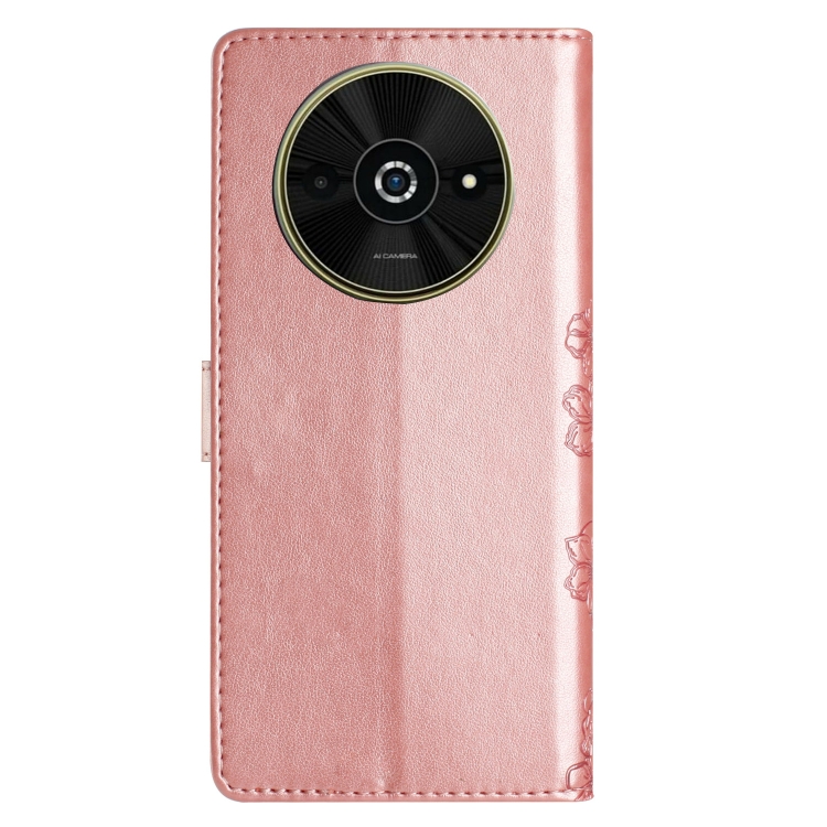 Funda de Teléfono de Pu con Relieve de Piel de Mariposa y Flor de Cerezo para Xiaomi Poco C61 (Oro Rosa)