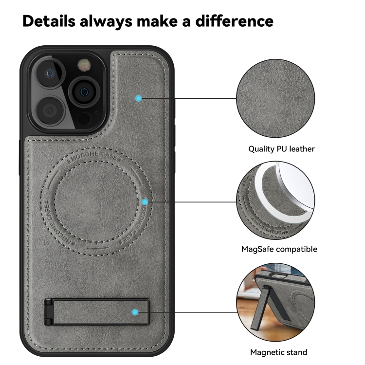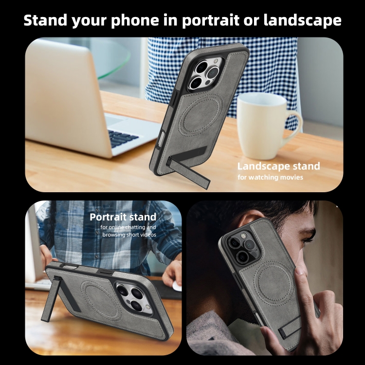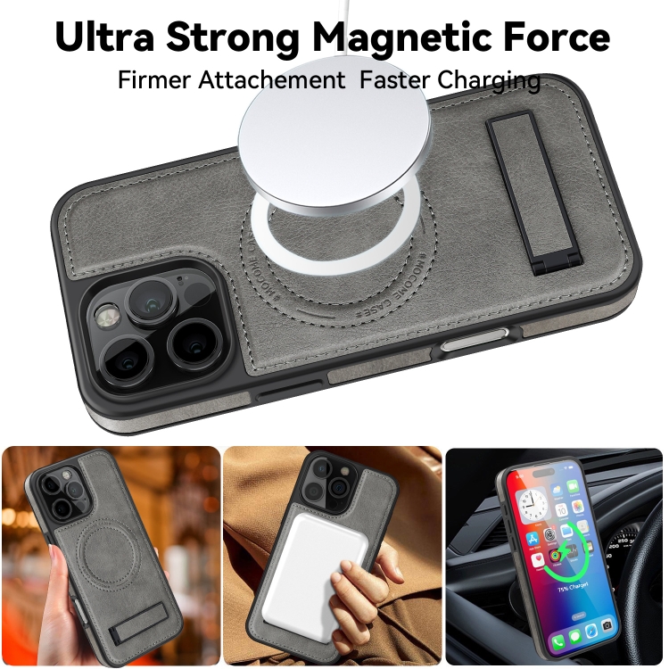 Funda de Teléfono PU con Soporte Multifunción Magsafe para iPhone 16 Pro Max (Gris)