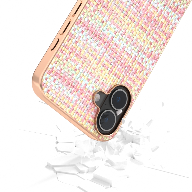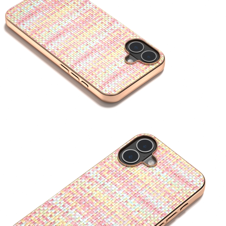 Funda de Teléfono Pu con Textura de Celosía y Marco Galvanizado para iPhone 16 Plus (Rosa)