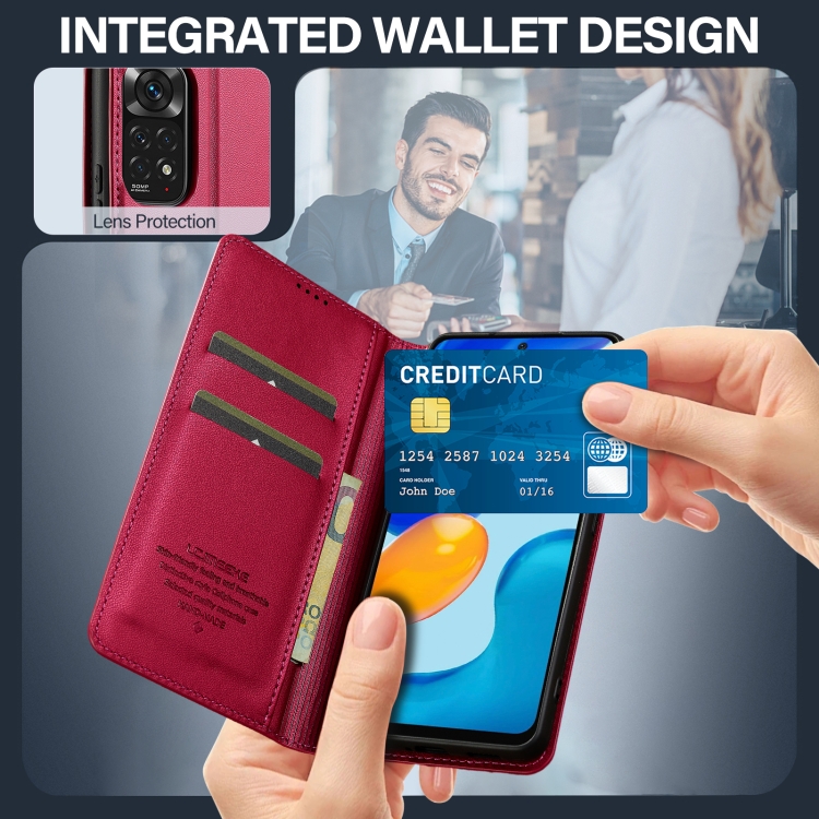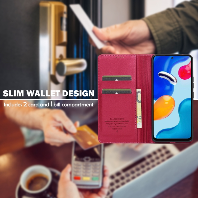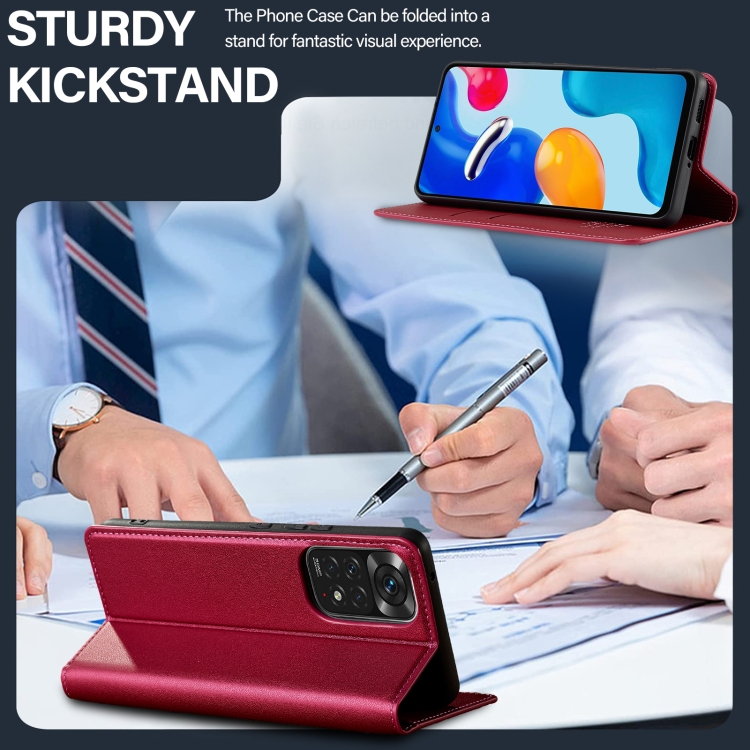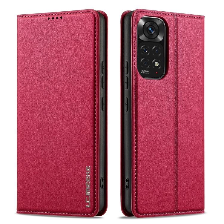 Funda de Teléfono de Pu con Textura Fina Esmerilada para Redmi Note 11 Pro 5G Lc.Imeeke L1 Series (Roja)