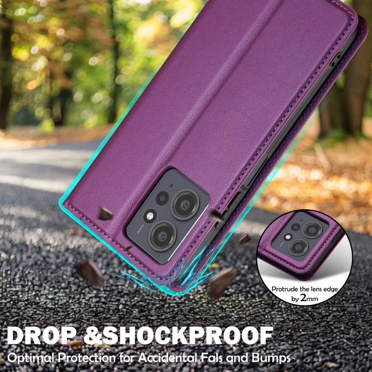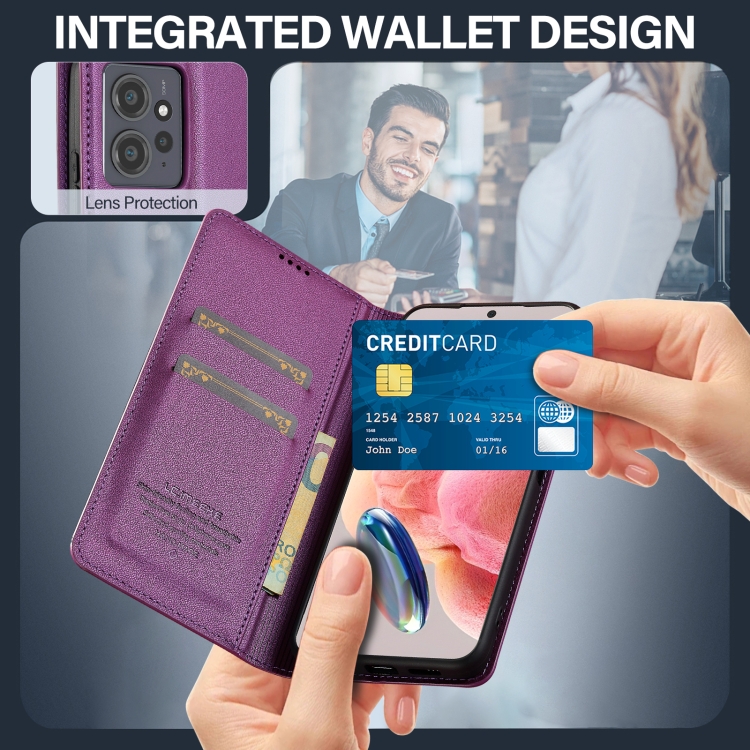 Funda de Teléfono de Pu con Textura Fina Esmerilada para Redmi Note 12 4G Global Lc.Imeeke L1 Series (Morado)
