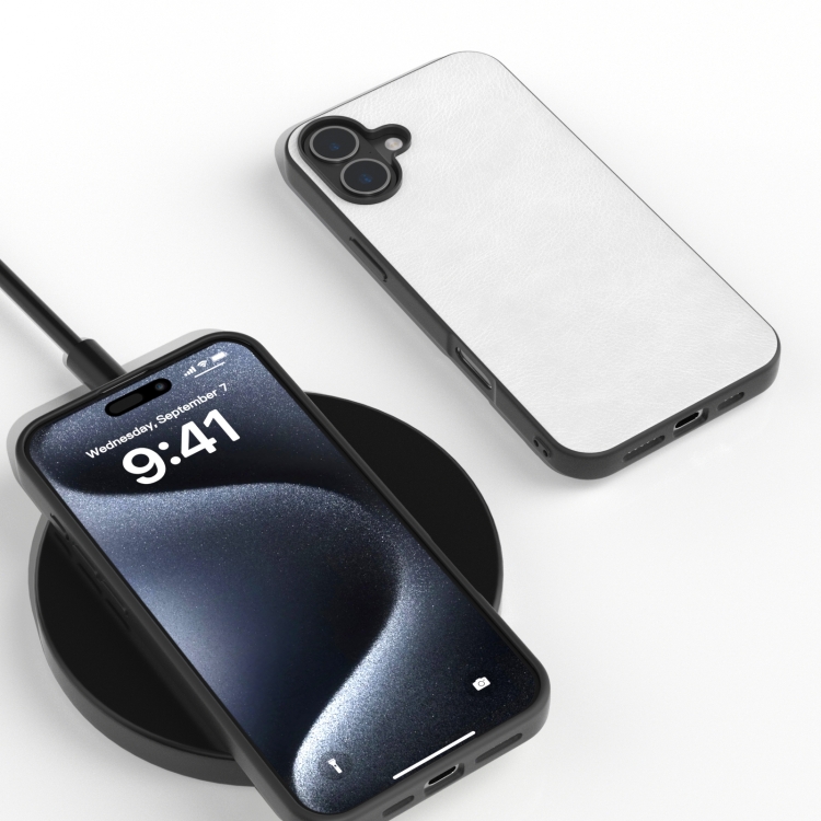 Funda de teléfono PU con textura Lichi dos colores para iPhone 16 Plus (Blanca)